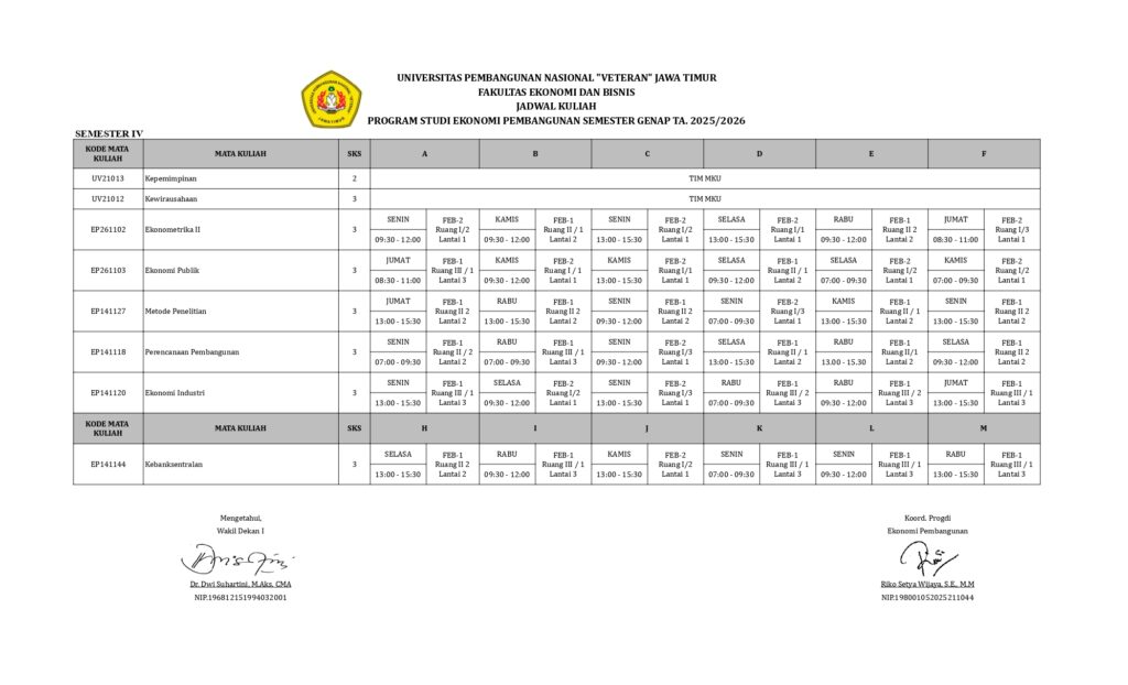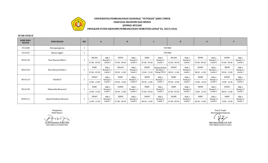 - Jadwal Kuliah Ekonomi Pembangumnan Semester Genap 2025-2026